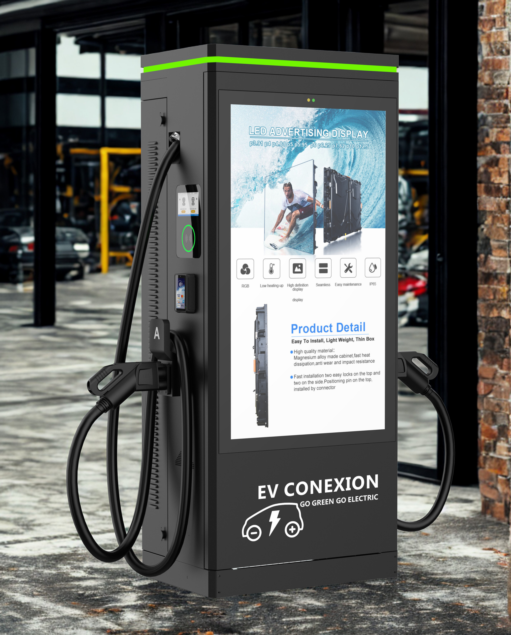Haute visibilité : Contrairement à un panneau classique, l’écran capte l’attention des passants et des conducteurs en plein processus de recharge.